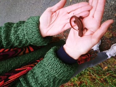 Grabbed these shots before she let the beautiful amphibian go in the wet foliage nearby.
